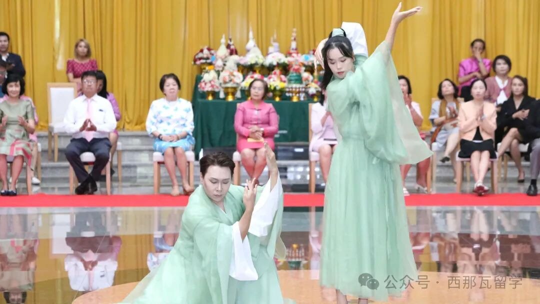 随后进行的文艺表演点亮了整个典礼现场:长鼓舞的激昂节奏把传统文化的活力全都展现了出来,热情的舞步更是点燃了全场!泰国传统舞蹈BaisriSuKwanFusion则传递了浓厚的文化底蕴,而我校音乐舞蹈社MusicandDanceClub带来的音乐表演用创新形式把传统和现代融合到了一起,每个节目都收获了新生们的热烈掌声!